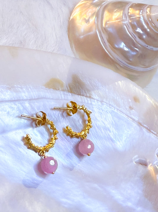 Cassandra – Natural Ruby Drop Hoops (gold)
